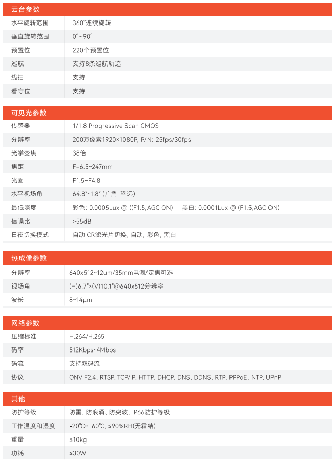 支持ONVIF2.4、RTSP、TCP/IP、HTTP、DHCP、DNS、