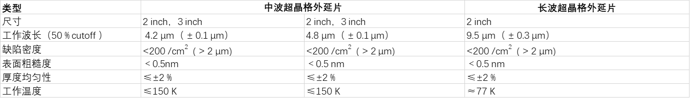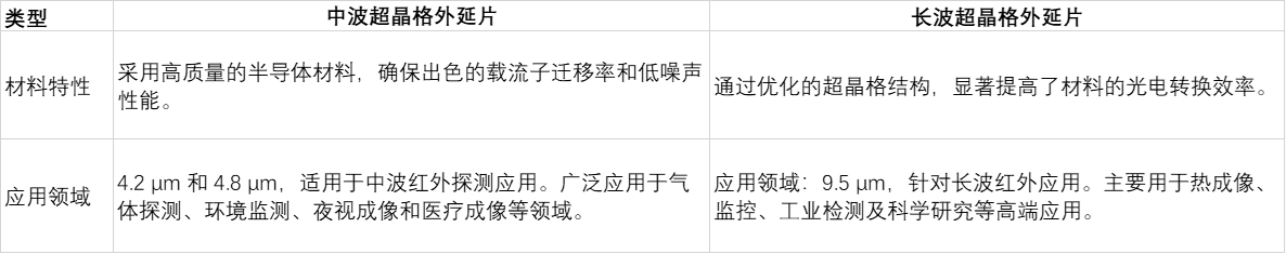 光智科技中波(4.2μm和4.8μm)及长波(9.5μm)超晶格外延片,采用先进的分子束外延生长技术,专为红外探测器和光电器件应用设计。具有优越的光学和电子性能,能够满足高灵敏度、高分辨率的探测需求。