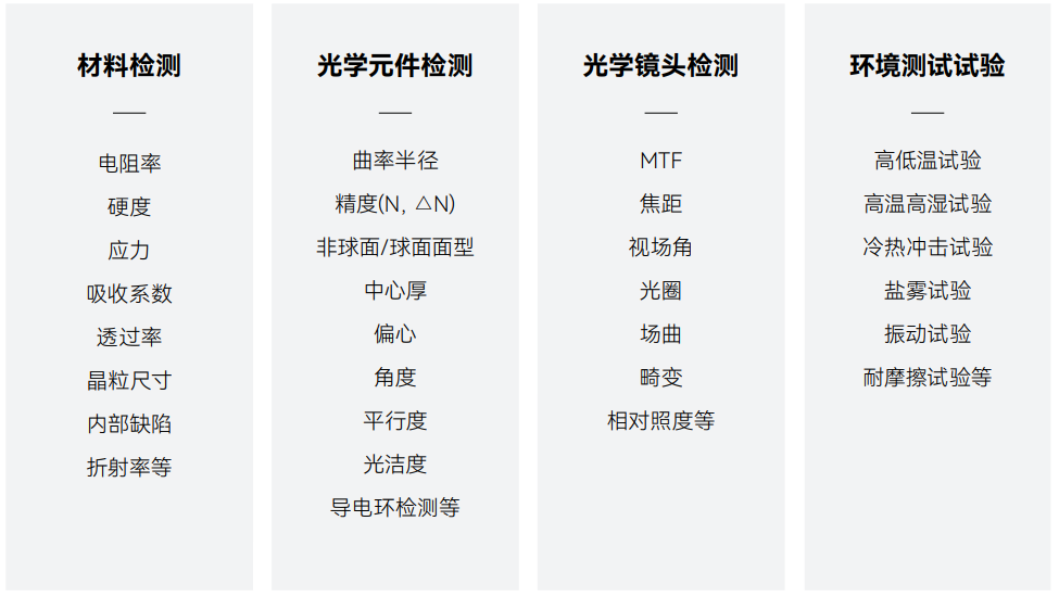 光智科技拥有光学检测部门,可对光学镜片、镜头及其零部件进行系统专业检测。